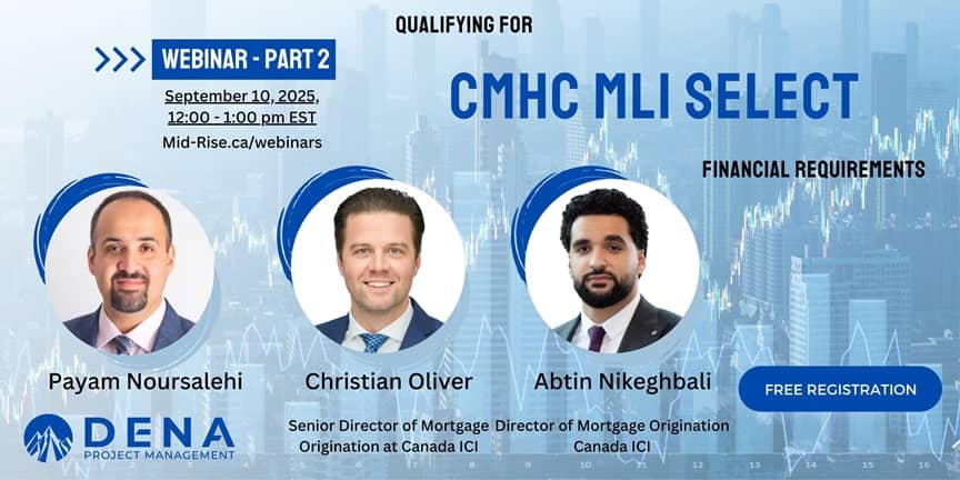 Hi Reader, Fall is Here! As previously promised, we are launching Part 3 of this 3-part webinar series on How to Qualify for CMHC Financing, and this part is about the financial requirements. If you missed parts 1 & 2, you can still watch the replay through the links below. These days, one of the primary drivers (if not the only one) for new development projects, especially purpose-built rentals, is the financial incentives that CMHC programs provide for new projects. That is why we are...
